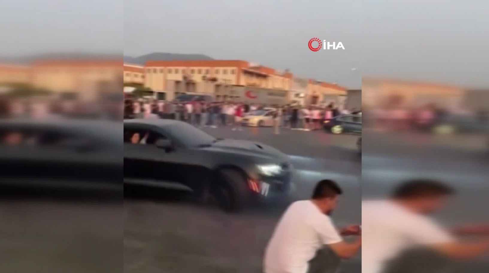 İzmir'in Bornova ilçesinde drift yapan araçları cep telefonuyla kaydeden bir vatandaş kontrolden çıkan otomobilin çarpması sonucu yere savruldu. O anlar saniye saniye kameraya yansıdı.