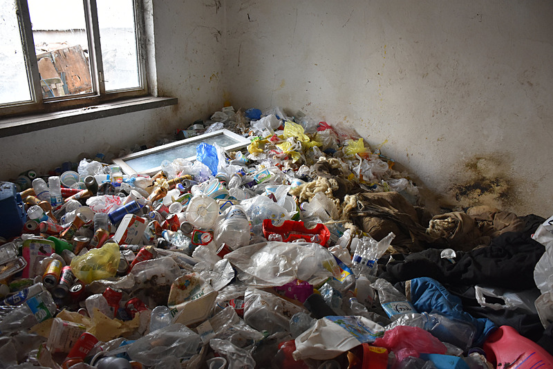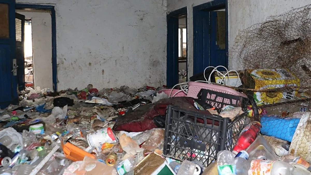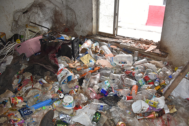 Binanın tuğla ile örülmüş pencere kısımları belediye ekiplerince kırıldı. Binaya giren ekipler yaklaşık 6 ton çöp ile karşılaşırken, görevliler zehirlenme ihtimaline karşı koruyucu önlem aldı.