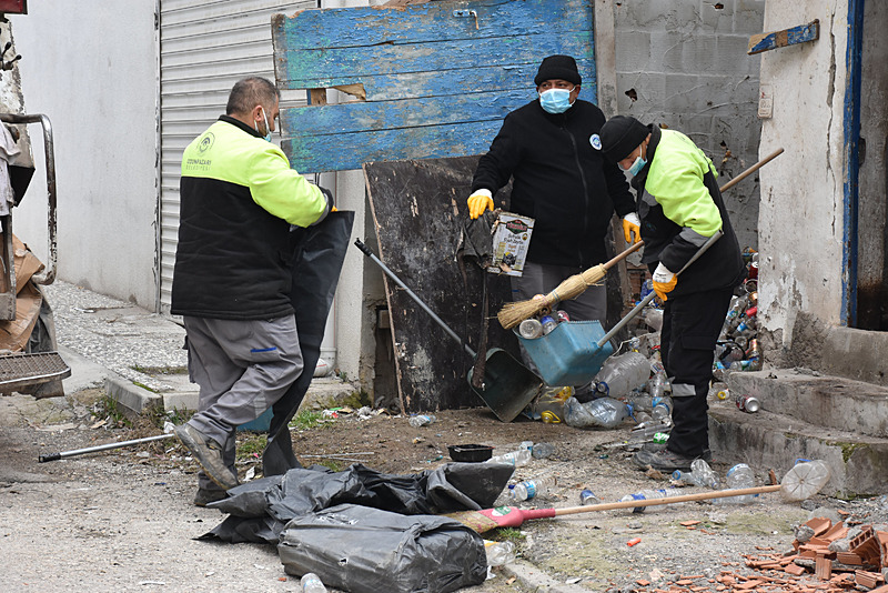 Evin bulunduğu sokak şeritlerle kapatıldı. İki yıl önce de temizlenen evin sahibi Yılmaz D.'nin ekipleri görünce kahvehaneye gittiği öğrenildi.