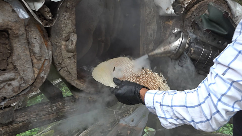 Memoğlu "Atölyede kütüğü oyar içini yaparız, getirir ağaçların kafasına koyarız. Ondan sonra oğul gelir Mart, Nisan, Mayıs aylarında içerisine yerleşir. Sonrasında arı orada bildiği gibi balını yapar. Kesinlikle biz ona herhangi bir katkı maddesi, şeker, mum hiç bir şey koymayız. Ne varsa doğada arı onları toplar, nektarı toplar, balını yapar. Sonrasında biz gider o karakovanımızı sağarız" dedi.