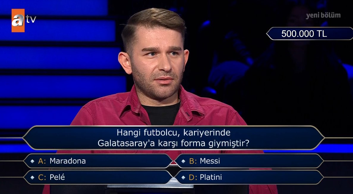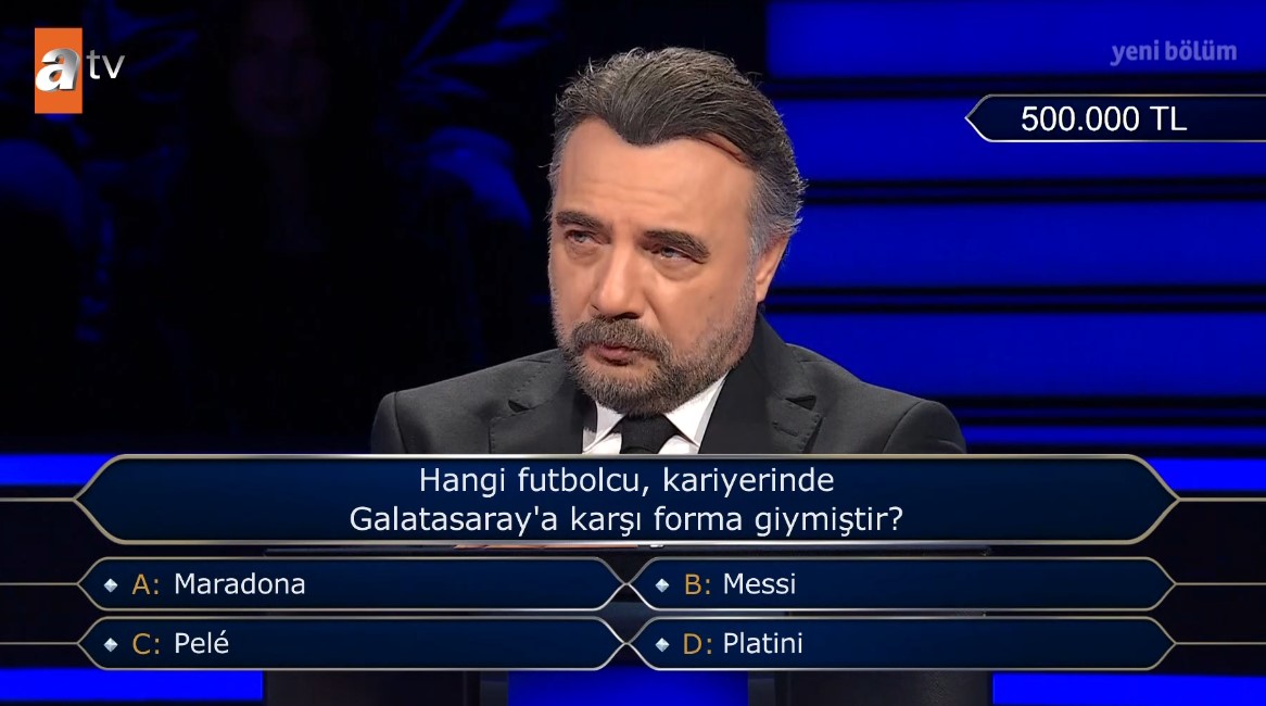 Kim Milyoner Olmak İster'de yarışmacıya sorulan 500 bin TL değerindeki soru özellikle Galatasaraylılar olmak üzere futbolseverleri ekran başına kilitledi.
