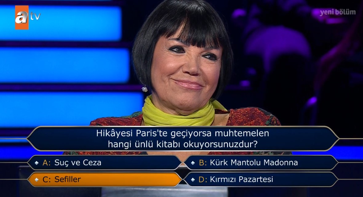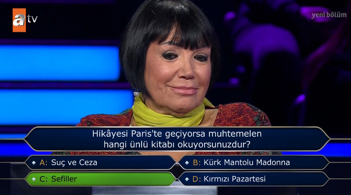 A ve D şıkkı arasında kaldığını söyleyen yarışmacı o soruda düşündü ve son olarak çekildi. Yarışmacı Kapıcı, cevap verecek olsaydı "D-Platini" şıkkını söyleyeceğini belirtti.