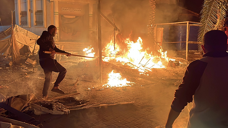 Saldırı sonucunda yaşamını yitirenlerin naaşları ile yaralanan Filistinliler, kentteki el-Ehli Baptist Hastanesi'ne getirildi.