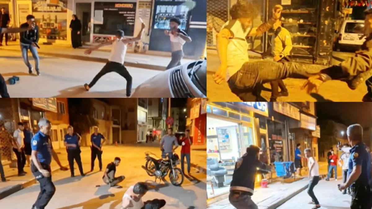 Tuncer Ç. ile oğlu Mustafa Samet Ç. polislerin müdahalesiyle durdurulurken, Ali A. ile oğlu Mustafa A. husumetlilerini bırakıp polis memurlarına saldırmaya başladı. Mustafa A. elindeki sandalye ile polis memurunun koluna vurup yaralarken, babası Ali A. ise elindeki bıçakla önce çevredeki vatandaşlara, sonra da polis memuruna saldırdı.