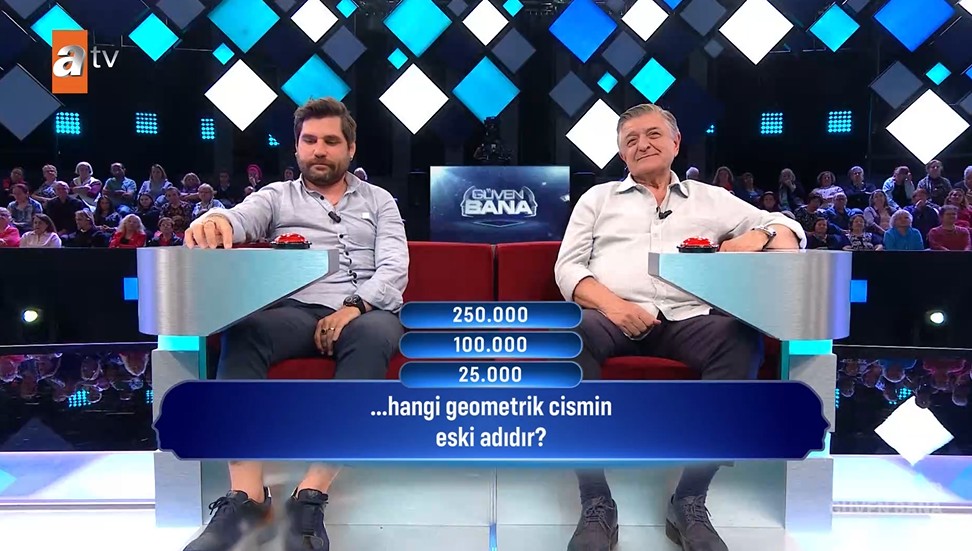Karşılarına çıkan kategorilerde ödül miktarları; kolay sorular için 25 bin TL, orta sorular için 100 bin TL ve zor sorular için 250 bin TL olarak belirlendi. 8. soruda ipucu olarak "…hangi geometrik cismin eski adıdır?" ifadesi verildi.