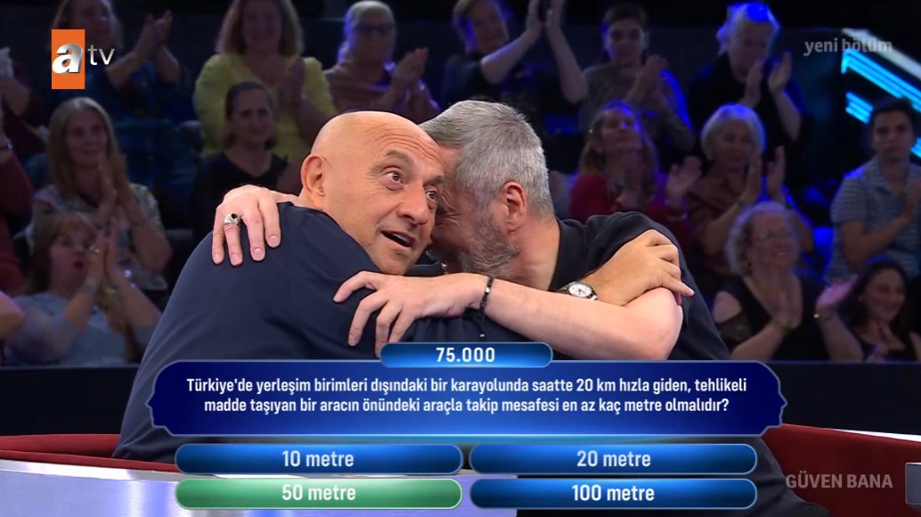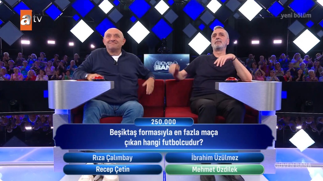 atv'nin yepyeni bilgi yarışması Güven Bana, dün akşam yayınlanan bölümüyle yine seyircisini ekrana kilitlemeyi başardı. Yarışmanın bu bölümünde futbol yorumcuları Sinan Engin ve Abdülkerim Durmaz geceye renk kattı. Büyük ödül için yarışan ekranların sevilen spor yorumcuları geceye renk katarken esprili halleri ve sempatik tavırlarıyla izleyicinin beğenisi topladı. Güven Bana'da ikilinin karşısına çıkan futbol sorusu yarışmacıları oldukça düşündürürken, gecenin sonunda Sinan Engin'in son anda yaptığı hamlesi elenmelerine neden oldu. İşte o gülümseten anlar ve yarışmada yaşananlar...
