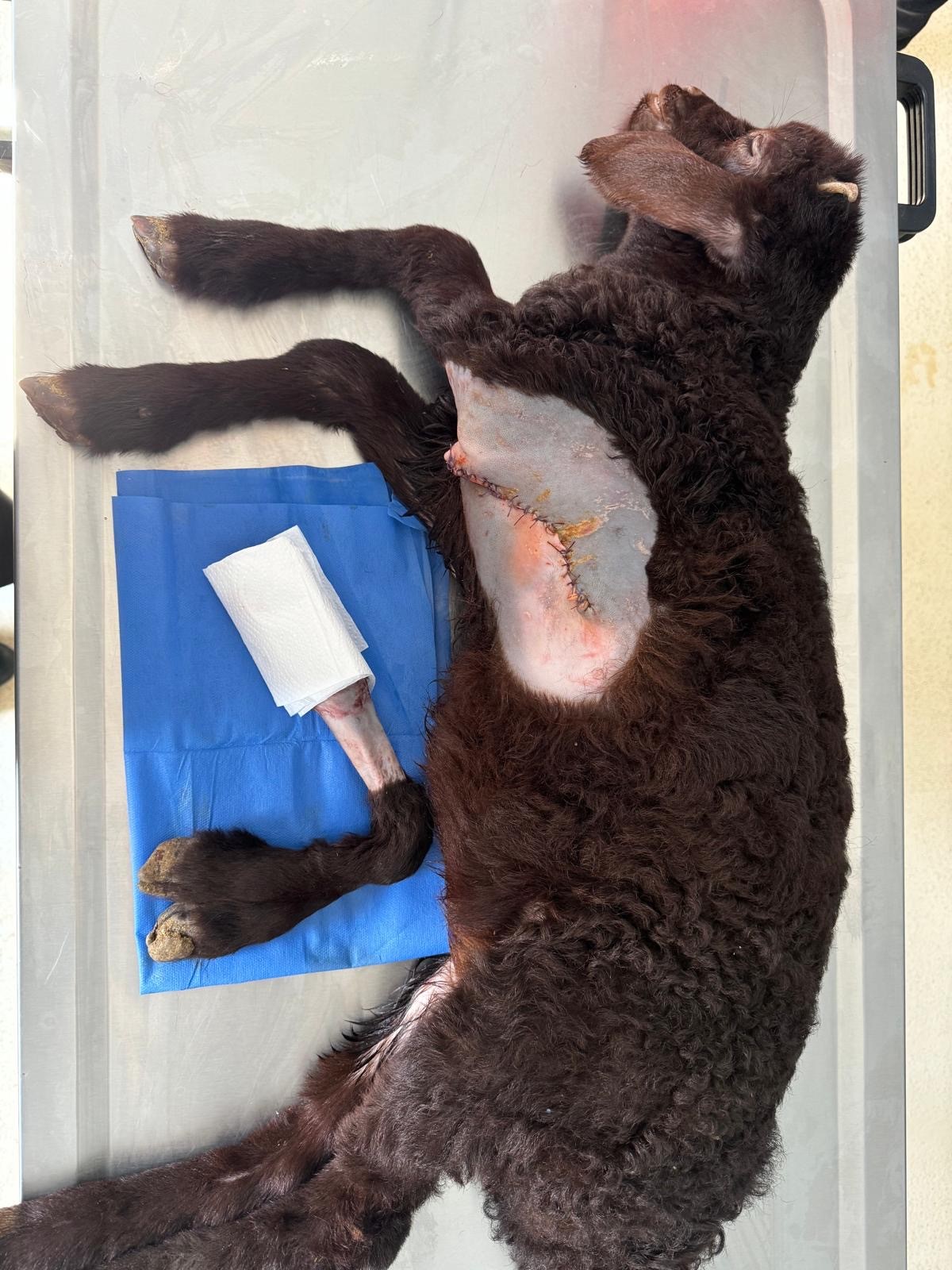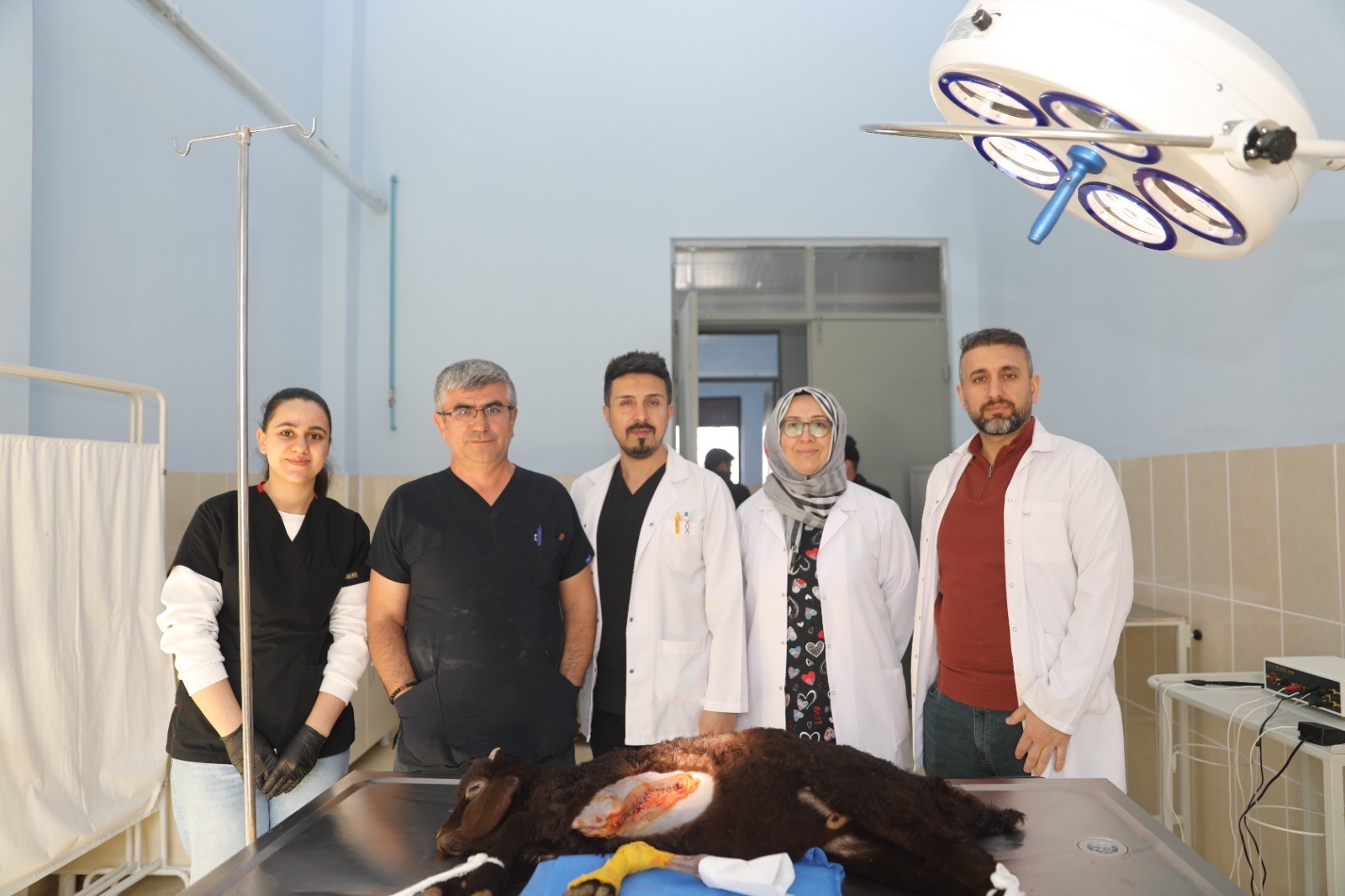 Öğretim Üyesi Başhekim Dr. Gökhan Koçak öncülüğünde yapılan ameliyatla 5 bacaklı dünyaya gelen kuzunun fazla bacağı başarılı bir ameliyatla alındı.