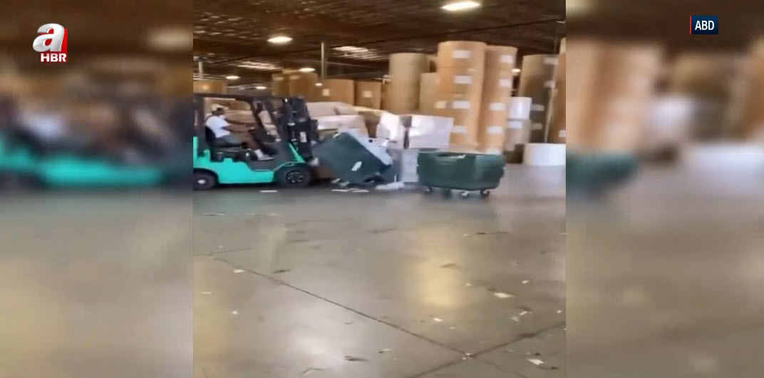 İlginç olay ABD’de yaşandı. İşten çıkarılan bir işçi sinirlerine hakim olamadı. Bakın intikamını nasıl aldı... Görüntüler Amerika Birleşik Devletleri'nde kayda geçti. İşten kovulan çalışanın intikamı hayli yıkıcı oldu. İŞTEN KOVULUNCA ÖYLE BİR ŞEY YAPTI Kİ... Sinirlerine hakim olamayan adam forkliftle koca depoyu savaş alanına çevirdi. O anlar ise saniye saniye böyle kayda geçti… A HABER UYGULAMASINI İNDİRMEK İÇİN TIKLAYIN