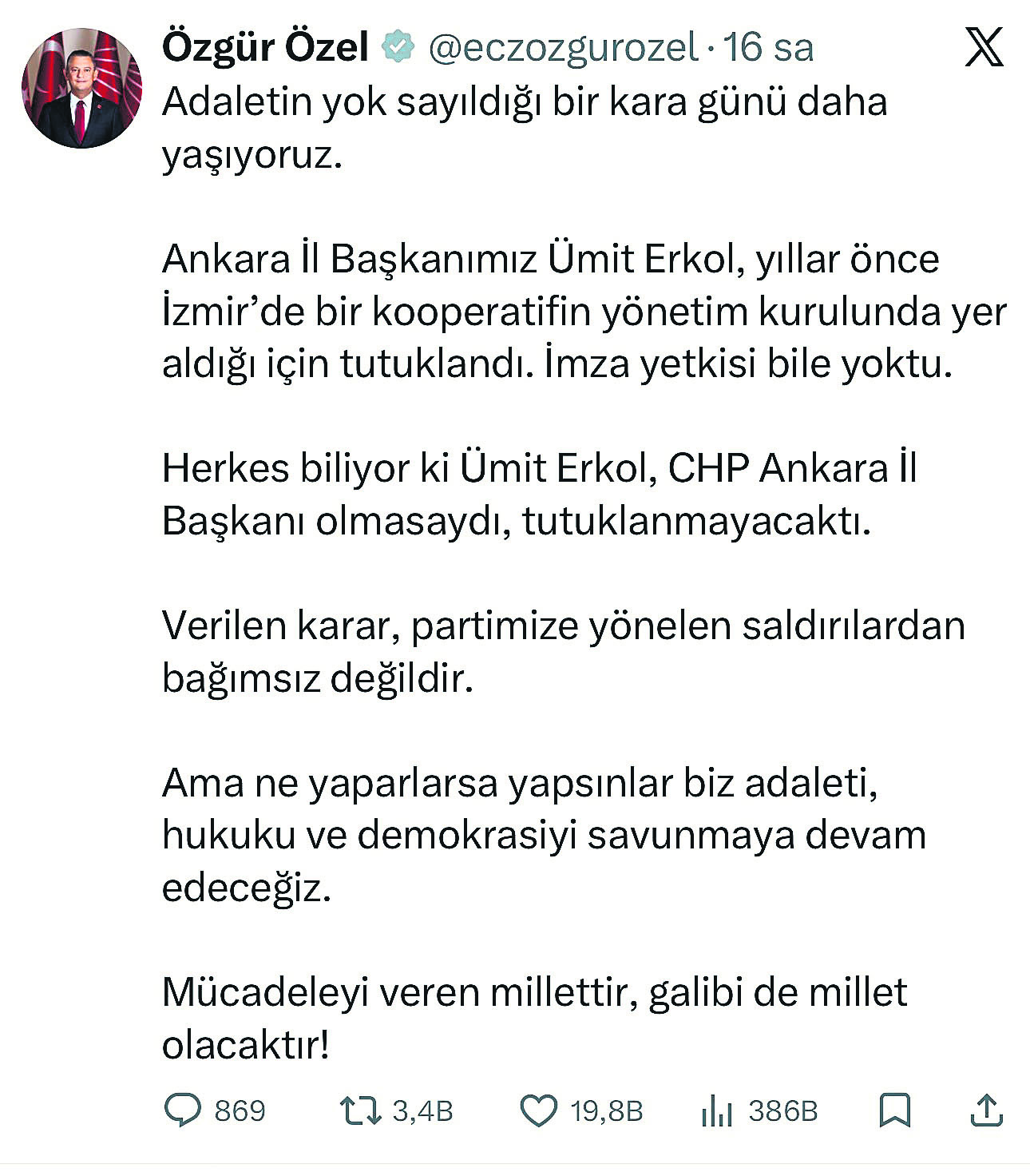 CHP ANKARA İL BAŞKANI ERKOL TUTUKLANDI!