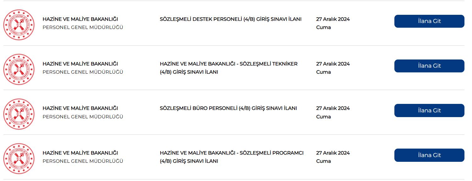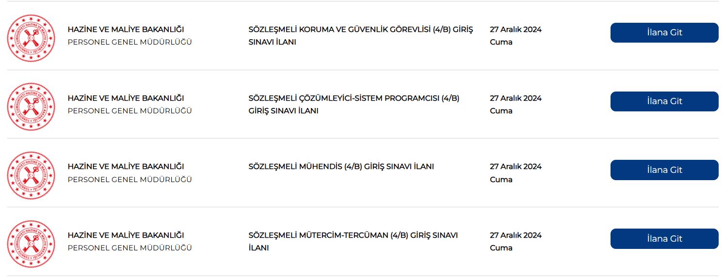 Hazine ve Maliye Bakanlığı Resmi Gazete'de 8 farklı alanda sözleşmeli personel alımları yapacağını duyurdu. 16 Aralık tarihinde başlayan başvurular 27 Aralık 2024 tarihinde sona erecek. Adaylar, başvurularını Bakanlığın resmî web sitesi veya Kariyer Kapısı platformu üzerinden yapabilirler. İşte aranan pozisyonlar ve kontenjan detayları…