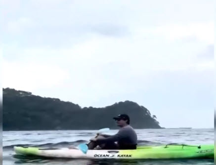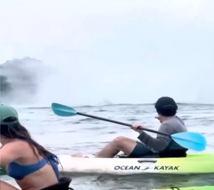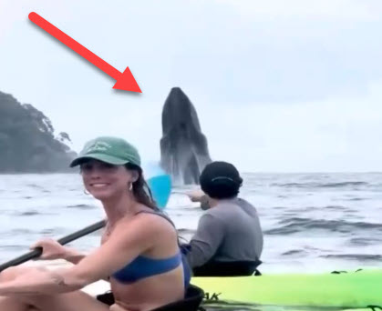 Kano sürüyorlardı... Karşılarına aniden dev bir balina çıktı. O anlar kameraya işte böyle yansıdı...