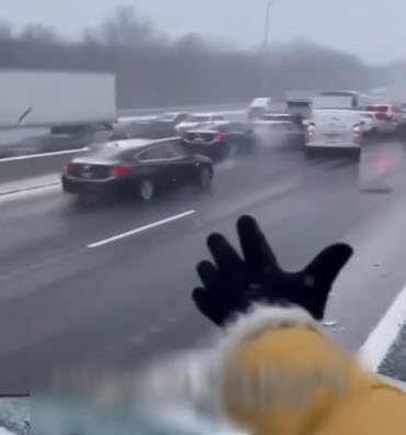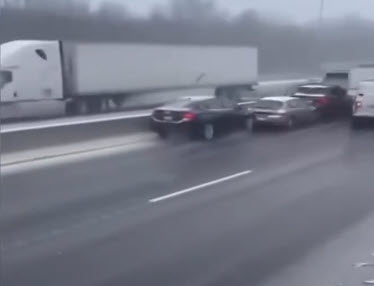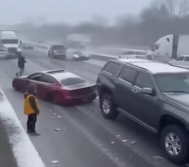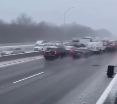 Görüntülerde 50'den fazla aracın karıştığı zincirleme trafik kazasına Şükran Günü tatili bitiminde oluşan yoğunluğun ve kar yağışının neden olduğu bildirildi.