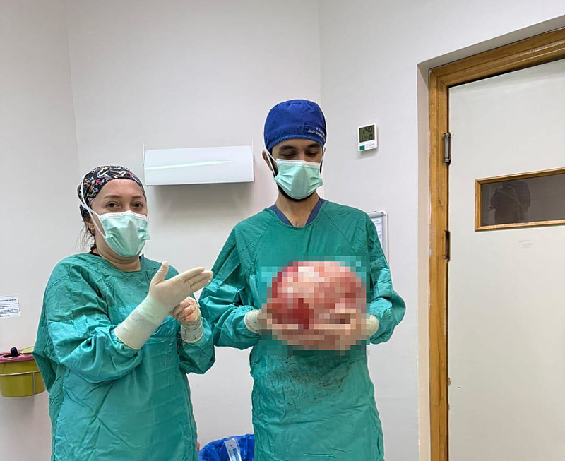 Amasya'nın Göynücek ilçesinde çiftçilik yapan Şule Akgül'ün karnı sadece 2 ayda giderek büyüdü. Evli ve 3 çocuk annesi kadın, 9 aylık hamile gibi olup nefes darlığı çekmeye başlaması üzerine Amasya Üniversitesi Sabuncuoğlu Şerefeddin Eğitim ve Araştırma Hastanesine başvurdu.