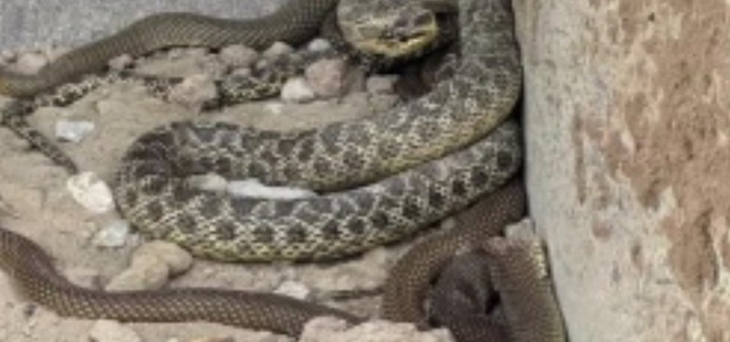Boyları 2,5 metreyi aşkın biri sarı yılan, diğer üç tanesi Hazer yılanı olmak üzere 4 tane yılan iş makinesinin kepçesine takıldı.