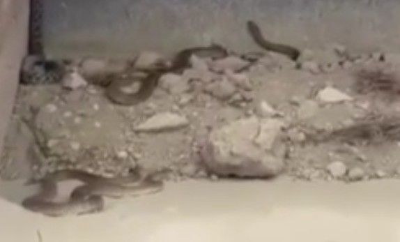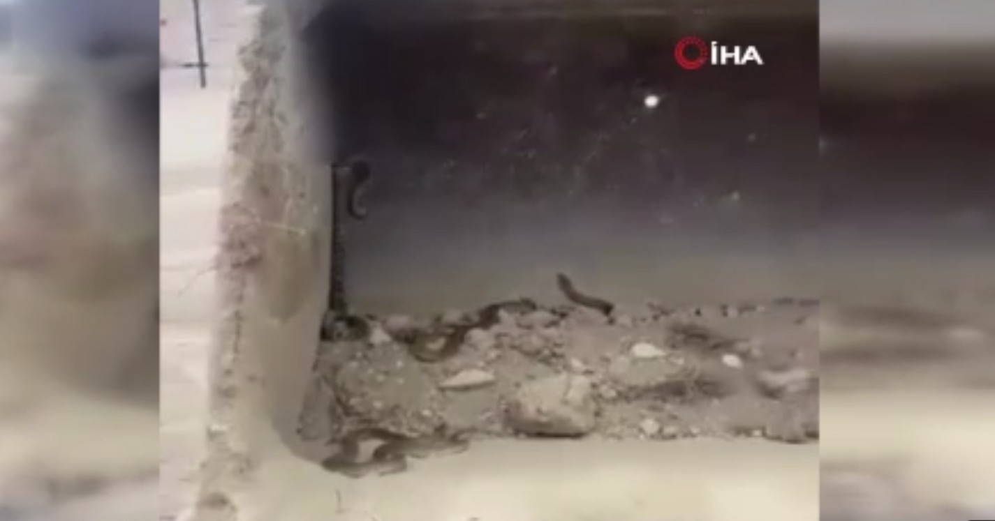 Kepçe operatörü şantiyede kazı çalışması yaparken karşılaştığı manzara ile adeta şoke oldu. Bir değil tam dört tane yılan iş makinasının kepçesine takıldı. Boyları 2.5 metrenin üzerinde bu yılanların görüntüleri ise anbean kameraya yansıdı.