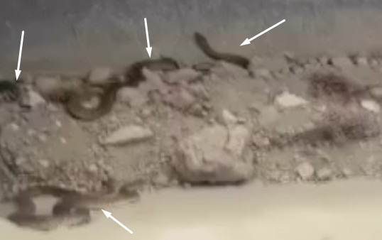 İş makinası ile çalışan operatör her zamanki gibi işini yaparken beklenmedik bir görüntü ile karşılaştı. Operatörün karşısına 4 tane 2,5 metrelik yılan çıktı.
