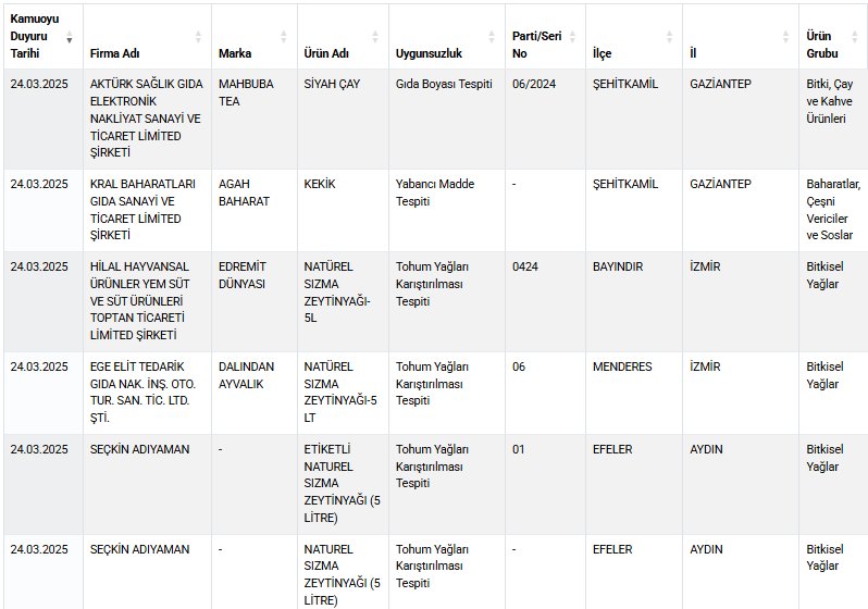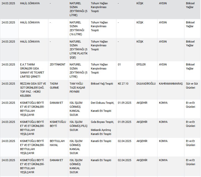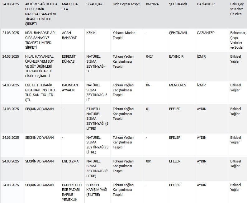 Tarım ve Orman Bakanlığı, her hafta yayımlanan taklit ve tağşiş yapan firmalar listesine bir yenisini daha ekledi.