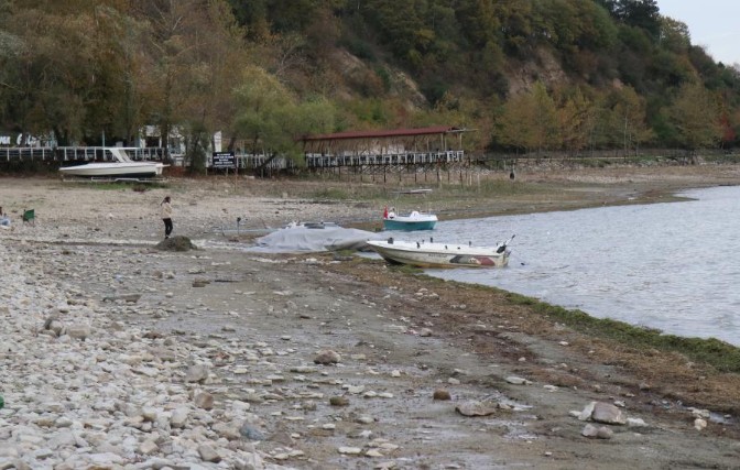 Kocaeli ve Sakarya'nın içme suyu kaynağı olan Sapanca Gölü'nün kot seviyesi 28.75 metreye düştü. Gölde çekilmenin izleri net bir şekilde belli olurken, oluşan ilginç görüntü endişe oluşturdu.