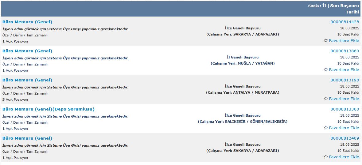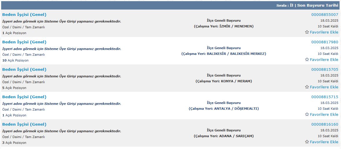 İŞKUR 18 Mart 2025 Salı günü itibariyle ülke genelinde Büro Memuru alımları için 178 ilan duyurdu. Beden işçisi alımlarında ise 2998 ilan kaydı yer alıyor. Alım yapılacak kuruma göre kontenjan, başvuru şartları ve son başvuru tarihleri farklılık gösteriyor. Başvuruda bulunacak adayların detayları dikkatle takip etmeleri gerekiyor.