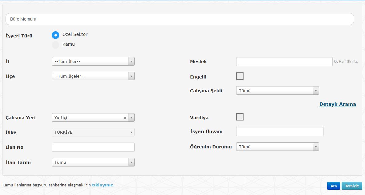 📍 "Ara" butonuna basarak uygun iş ilanlarını görüntüleyin.