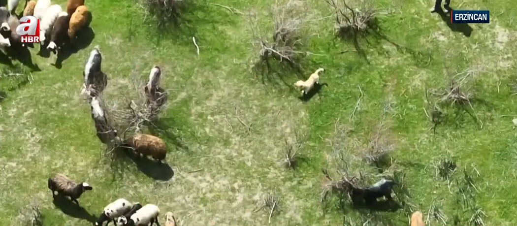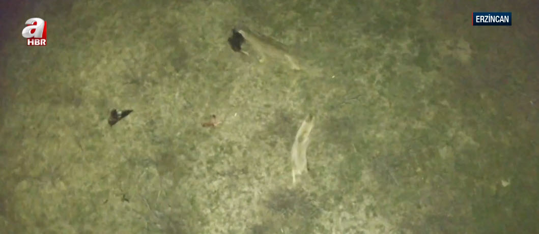 Vahşi doğa belgesellerini aratmayan görüntüler Erzincan'da kayda geçti. Çobanlık yapan Mert Yılmaz drone kamerası ile kurtların izini sürdü. Kaçırdıkları keçiyi yerken bakın nasıl görüntülendiler...