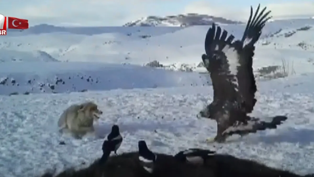 Vahşi doğa belgesellerini aratmayan görüntüler Türkiye'de kayda geçti. Hayvan leşinin başına toplanan saksağan kuşları, kaya kartalı ve bir tilki kameraya yansıdı. Kartal ile tilki yemek için karşı karşıya geldi. İşte yurttan yaban hayatına ilişkin derlediğimiz görüntüler...