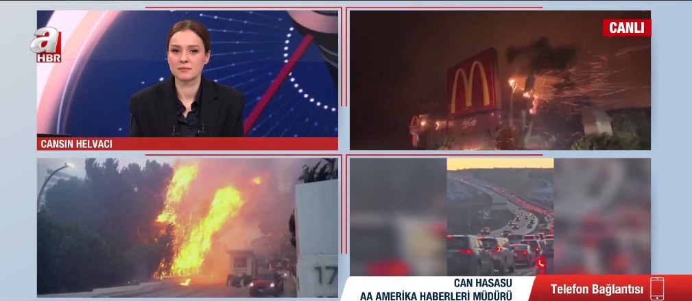 ABD'nin Los Angeles kenti alev alev yanıyor. Ekipler "Çaresiz kalıyoruz. Yangın kontrol altına alınamıyor" açıklamaları yaparken, vatandaşlar kovalarla yangına müdahale etmeye çalışıyor. Öte yandan yetkililer, çıkan şiddetli orman yangınları nedeniyle en az 10 kişinin öldüğünü açıkladı. 100 bini aşkın kişi tahliyeye zorlanırken, Los Angeles'ı kavuran yangınlar uydu fotoğraflarına yansıdı. Yangınlarla mücadele için ulusal muhafızlar görevlendirilirken, ABD Başkanı Joe Biden, yangınlarından kaynaklanan masrafların tamamını 6 ay karşılayacaklarını açıkladı. Bazı bölgelerde gece sokağa çıkma yasağı uygulanacağı, buna uymayanların gözaltına alınacağı bildirildi.