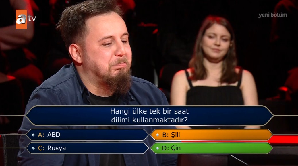 Yarışmacı soru karşısında uzun bir süre düşünmesinin ardından seyirci joker hakkını kullanmak istedi. Şıklar arasında ABD ve Rusya seçenekleri elenirken Şili ve Çin yanıtları kaldı. Şıklar arasında Çin yüzde 54 oy alırken Şili yüzde 46 oy alarak yakın bir cevap ortaya çıktı.