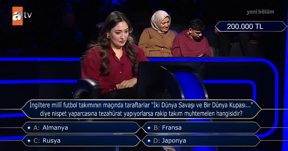 Yarışmacıya yöneltilen diğer soru ise 300 bin TL değerindeydi. Katılımcıya yöneltilen soru şöyle: