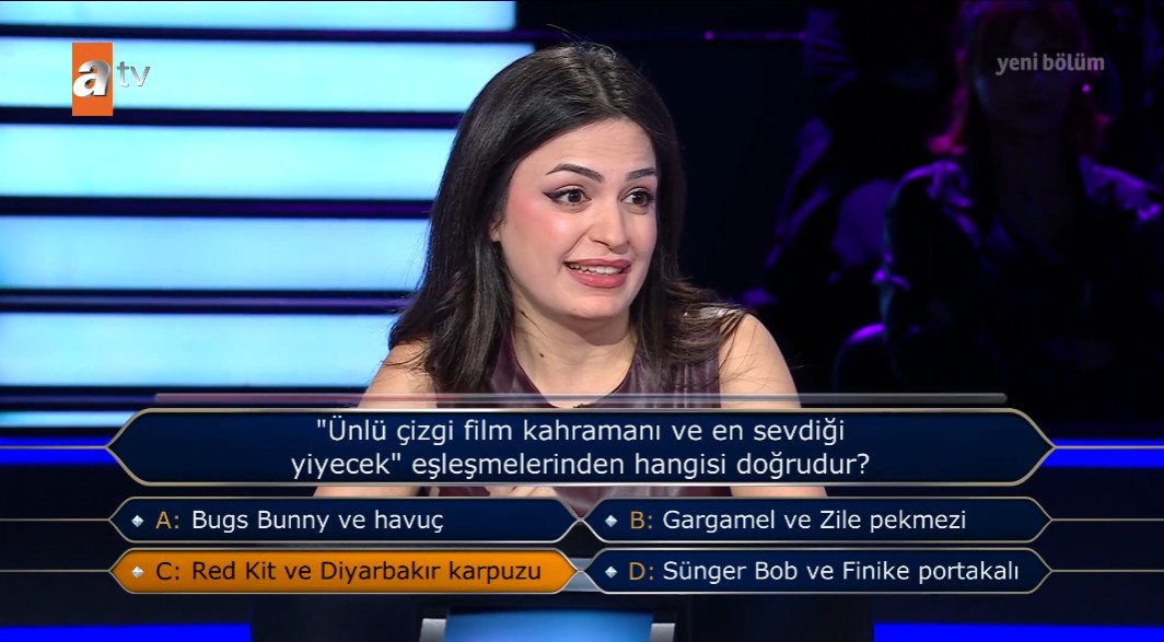 ATV ekranlarının vazgeçilmez bilgi yarışması "Kim Milyoner Olmak İster", Oktay Kaynarca'nın sunumuyla her Perşembe ve Pazar akşamı izleyiciyle buluşmaya devam ediyor. Yıllardır ilgiyle takip edilen yarışma, 21 Aralık 2025 akşamı da bilgi ve heyecanın zirveye çıktığı anlara sahne oldu. Bu bölümde yarışan isimlerden biri olan Merve Nur Şahin, henüz yarışmanın başında yaşadığı talihsizlikle dikkat çekti. Soruyu yanlış anlayarak hatalı bir yanıt veren Şahin, yarışmaya erken veda etti ve geceye damga vuran anlardan birini yaşadı.
