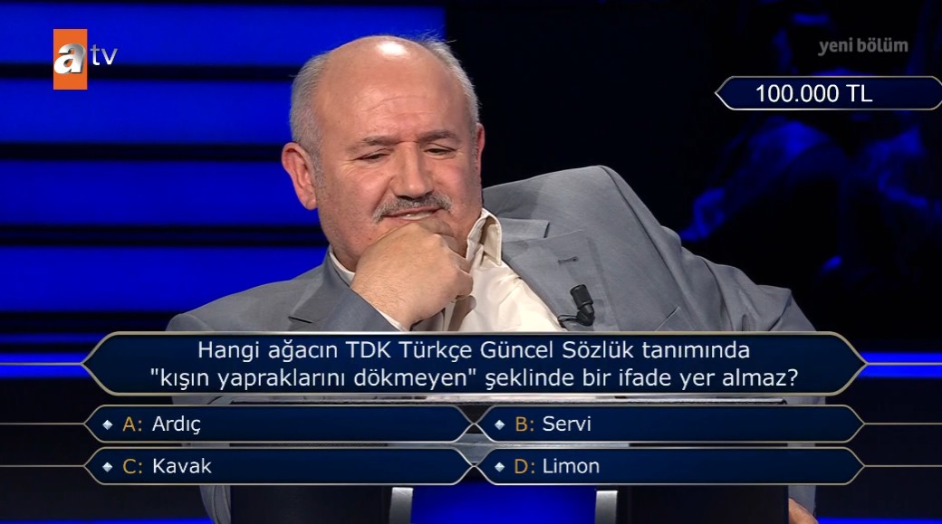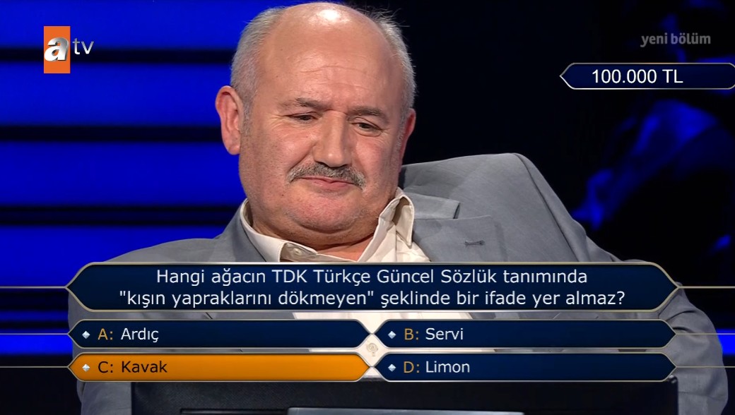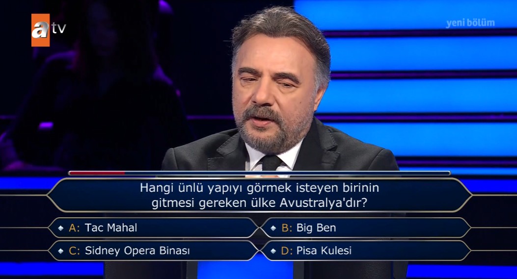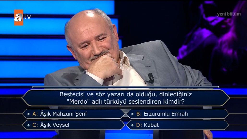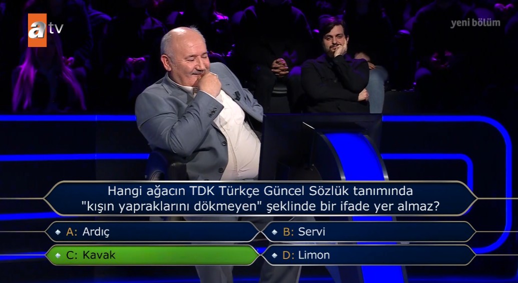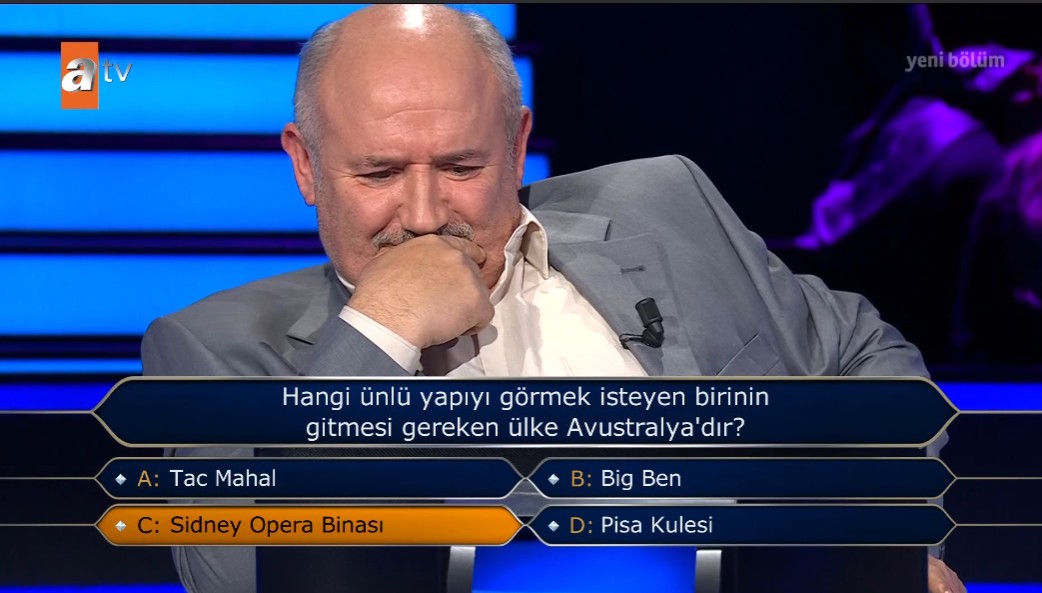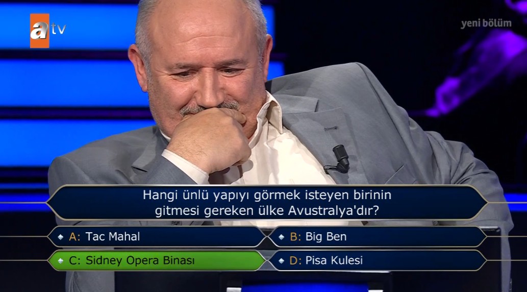 Milyoner'de 7 bin 500 lira değerindeki soruda 3. soruda yarışmacının karşısına çıkan soru hem Oktay Kaynarca'yı hem de yarışmacıyı güldürdü.
