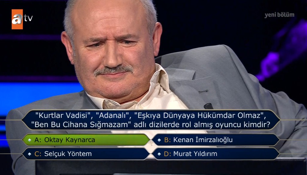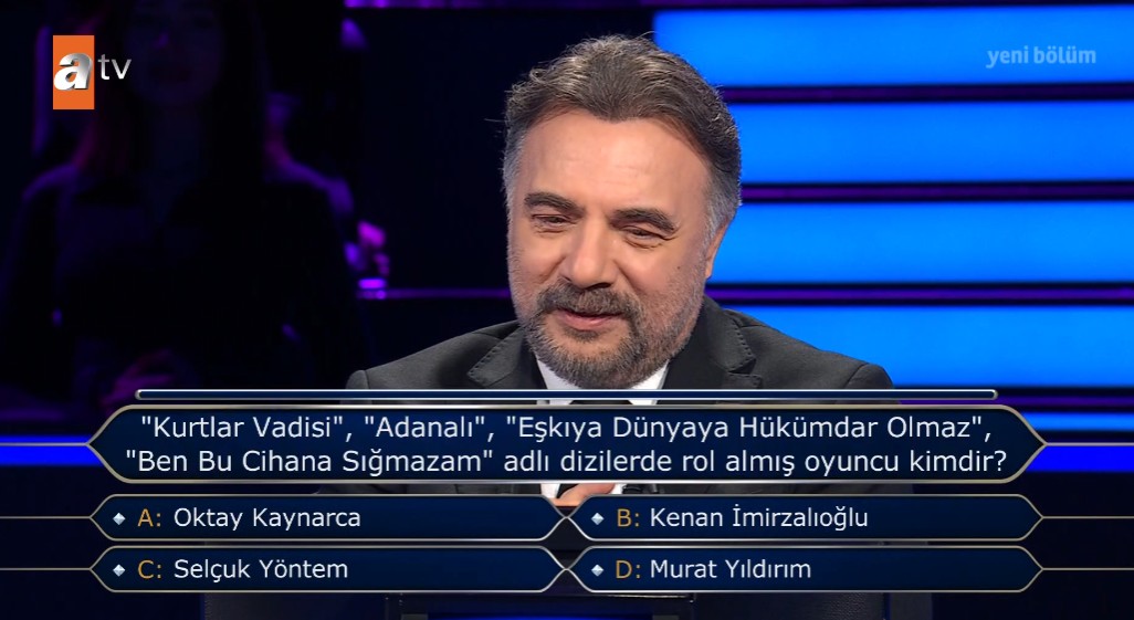 Soruda "Kurtlar Vadisi", "Adanalı", "Eşkıya Dünyaya Hükümdar Olmaz" ve "Ben Bu Cihana Sığmazam" aslı dizilerde rol almış oyuncu kimdir?" sorusu soruldu.