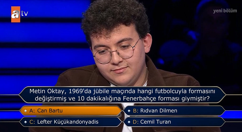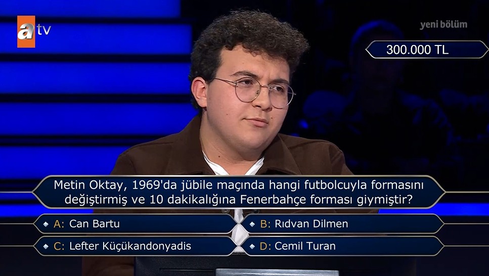 Yarışmada 300 bin TL'lik ödül sorusunda Polat'ın karşısına, Türk futbolunun unutulmaz anlarından biri çıktı. Soruda, "Metin Oktay, 1969'da jübile maçında hangi futbolcuyla formasını değiştirmiş ve 10 dakikalığına Fenerbahçe forması giymişti?" denildi.