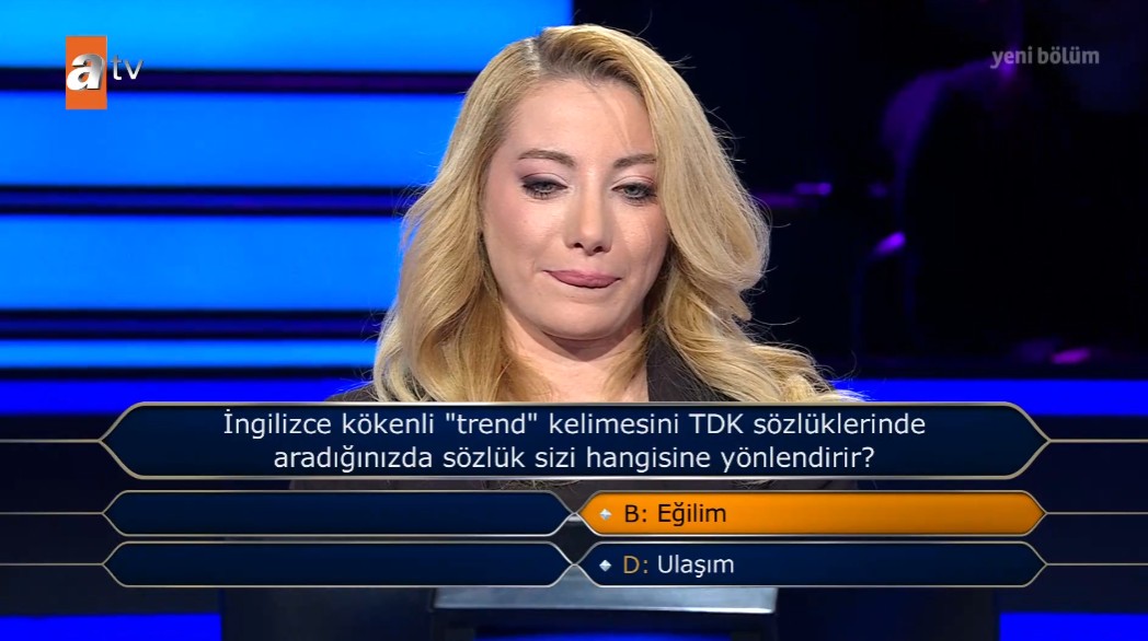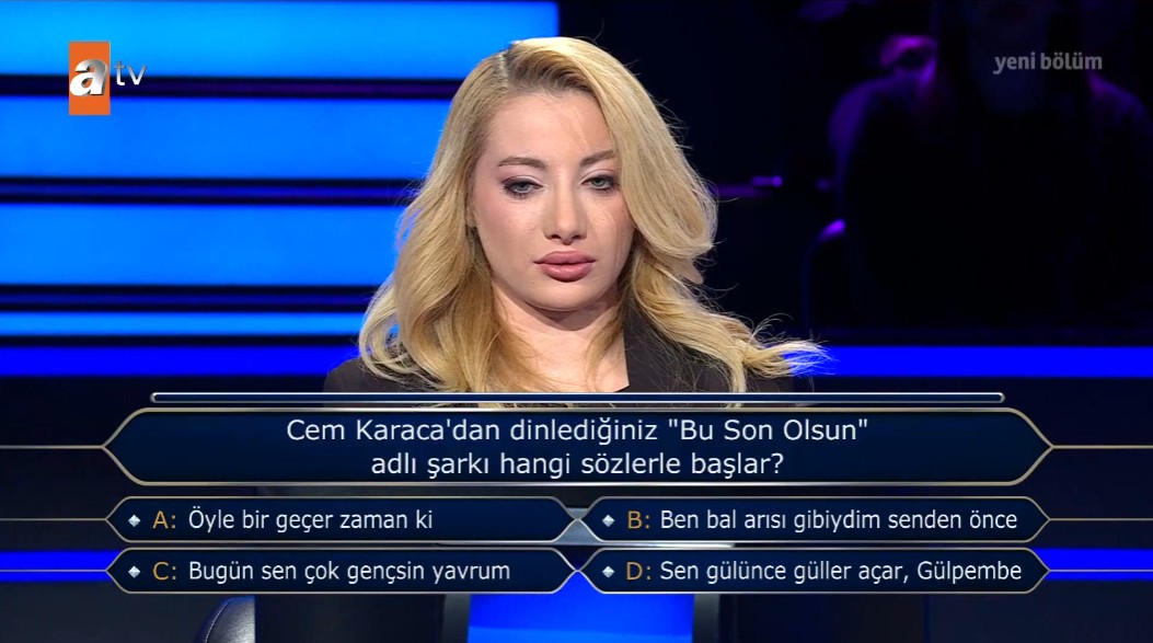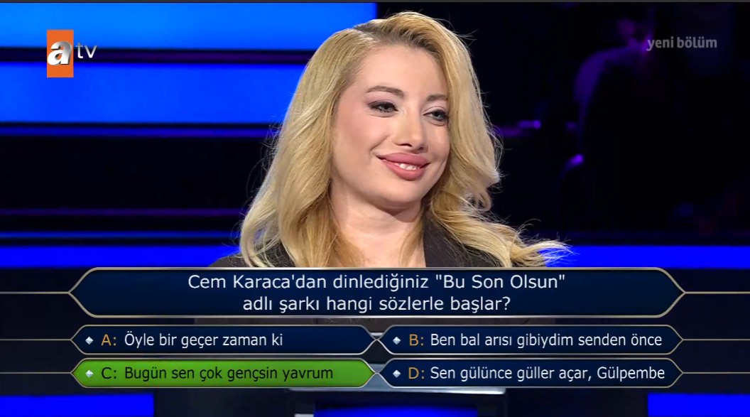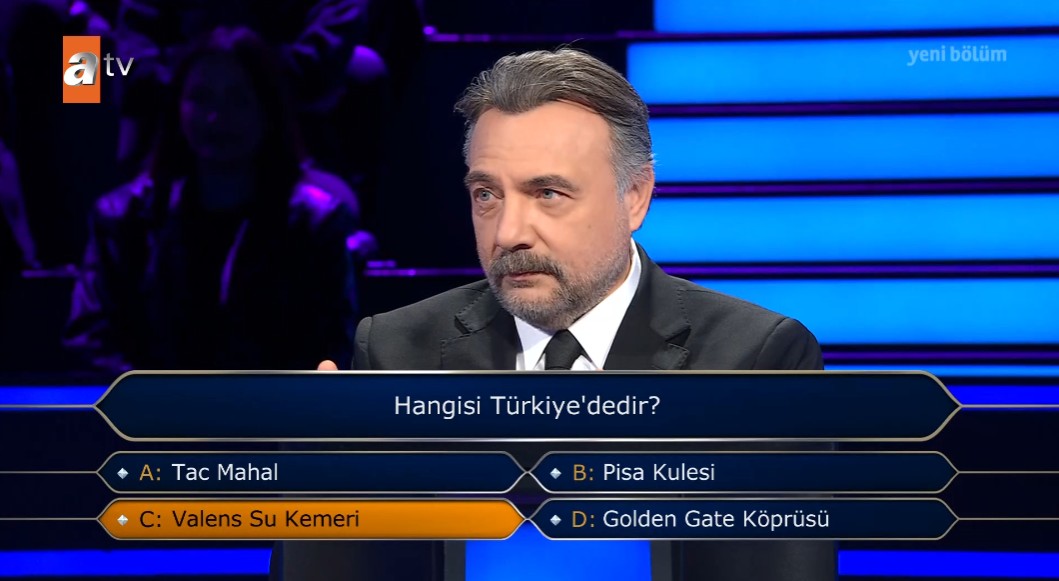 Milyoner'de 4. soru olarak "Hangisi Türkiye'dedir?" sorusu soruldu.