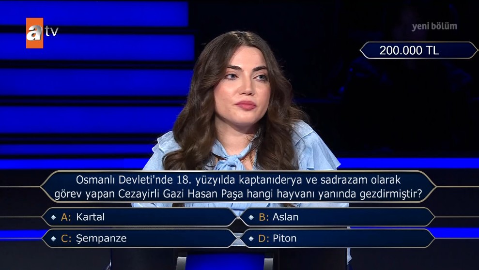 ATV ekranlarının vazgeçilmez bilgi yarışması 'Kim Milyoner Olmak İster', Oktay Kaynarca'nın sunumuyla her Perşembe ve Pazar akşamı izleyicilerle buluşmaya devam ediyor. Yıllardır ilgiyle takip edilen yarışma, 6 Kasım 2025 akşamı da bilgi ve heyecanın zirveye çıktığı anlara sahne oldu. Bu bölümde yarışan isimlerden biri olan Kübranur Erdoğlu, soruları başarılı şekilde yanıtlayarak, 200.00 TL değerindeki soruya kadar ilerlemeyi başardı. Yarışmada sorulan tarih sorusu, sosyal medyada büyük yankı uyandırdı. İzleyicilerin yoğun ilgisini çeken sorunun cevabı ise kısa sürede merak konusu oldu. İşte o çok konuşulan soru ve doğru cevap...