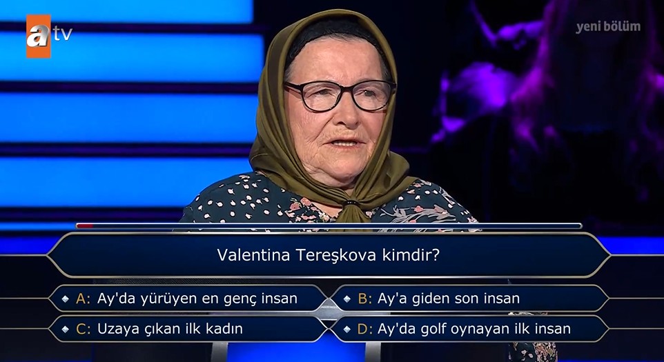 Büyük sevinç yaşayan Azize Vatansever, ardından 300 bin TL değerindeki soruya da ulaşmayı başardı. Ancak karşısına çıkan soru hem kendisini hem de ekran başındakileri düşündürdü: