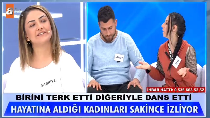 Müge Anlı ile Tatlı Sert'in bugünkü bölümünde yaşananlar izleyicileri şoke etti. Afet Karaçöy, "bebek maması almaya gidiyorum" diyerek evden çıkan ve kayıplara karışan kocası Samet'i aramak için Kırklareli'nden stüdyoya gelmişti. 33 yaşındaki 6 çocuklu adam, yanına gittiği eski eşiyle, nikahlı eşinin karşısına çıktı! Bunun üzerine iki kadın arasında gergin anlar yaşandı.