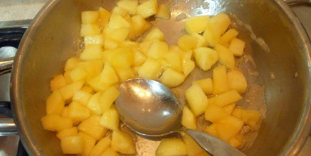 Dilimlenmiş ayvaları tavaya ekleyin ve her iki tarafını da hafifçe kızartın. Ayvalar hafifçe karamelize olmaya başlayacaktır.