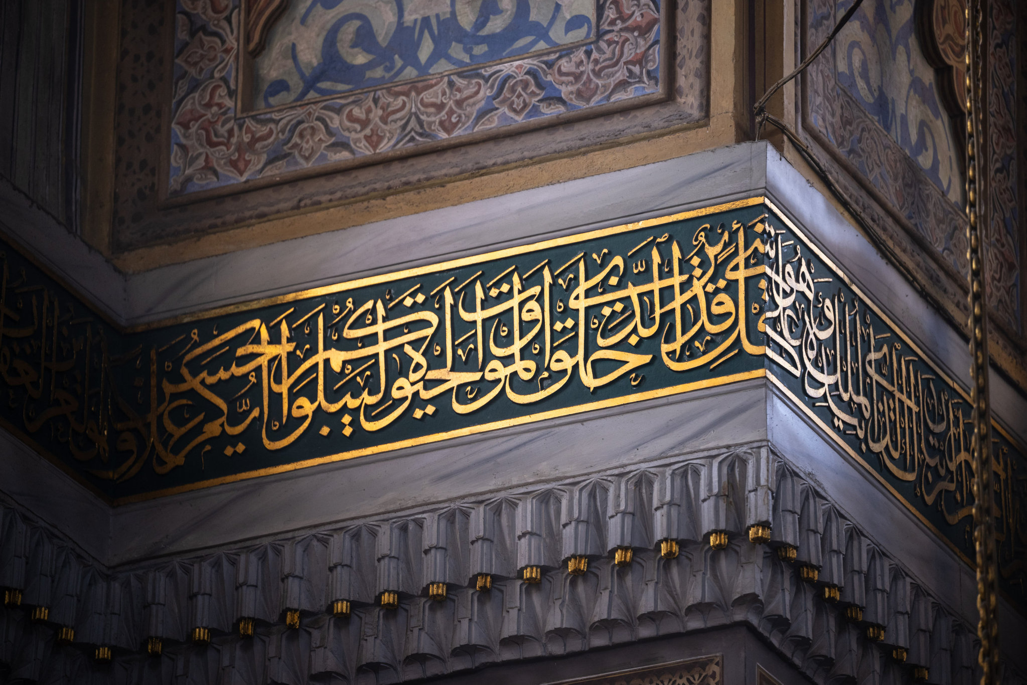 Yaklaşık 10 metre çapındaki pandantif kubbeyle örtülen caminin iç mekanı yoğun kalem işleriyle süslenirken, mavinin hakim olduğu bezemelerde bitkisel motifler ve yıldız kompozisyonları öne çıkıyor. Duvarları çevreleyen kitabe kuşağında celi sülüs hatla Mülk Suresi yazılı olan caminin, mermerden yapılan mihrap ve minberi ise klasik Osmanlı mimarisinin özelliklerini yansıtıyor.