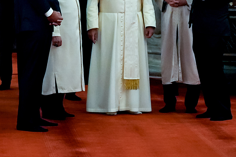 Papa'yı cami girişinde Kültür ve Turizm Bakanı Mehmet Nuri Ersoy, İstanbul İl Müftüsü Doç. Dr. Emrullah Tuncel ile Vakıflar 1'inci Bölge Müdürü Yavuz Güner karşıladı.