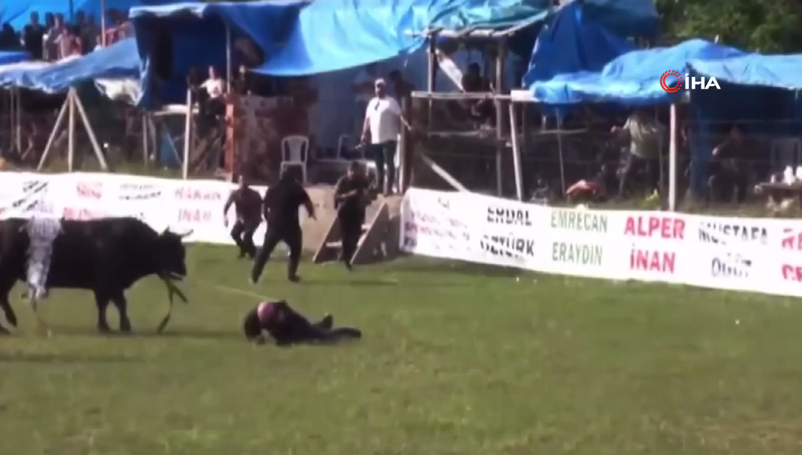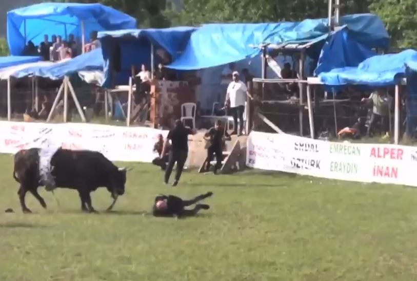 Çevredekilerin hızlı müdahalesiyle boğa kontrol altına alınırken, sağlık ekipleri yaralı Hacıoğlu'na ilk müdahaleyi yaptı.