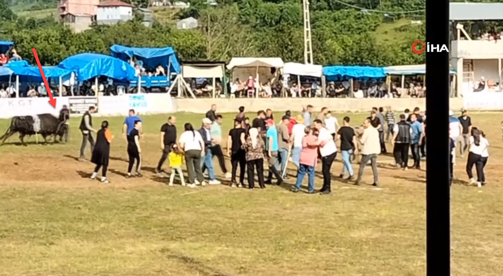 Artvin'in Murgul ilçesi Özmal köyünde bu yıl 34'üncüsü düzenlenen Geleneksel Boğa Güreşleri'nde şampiyon boğanın beklenmedik bir anda sahibine saldırması panik yarattı.