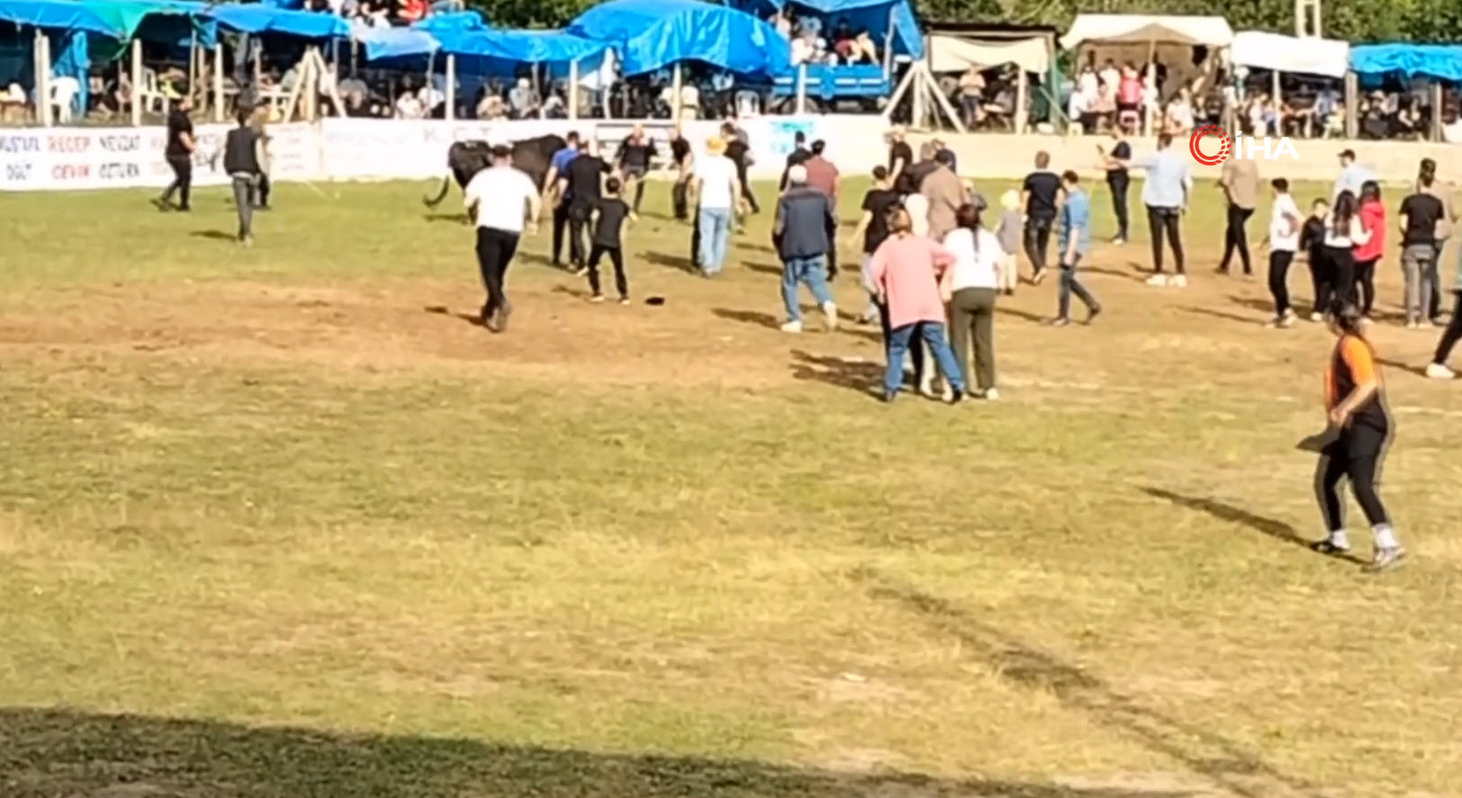 Güreşlerde kendi kategorisinde birinci olan 650 kiloluk "Canboğa" isimli boğa, kutlamalar sırasında horon oynayan kalabalığın arasında aniden sahibi Nevzat Hacıoğlu'na saldırdı.