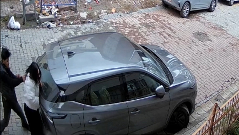 Bilal E. ardından kadını arabanın arkasına sıkıştırarak darbetmeye başladı. Vatandaşların gözü önünde tekme ve yumruklarla saldıran Bilal E., kadına küfür de etti. Kadının bağırarak ağladığı olay sırasında bazı vatandaşların müdahale etmesi üzerine Bilal E., silahını çekti.