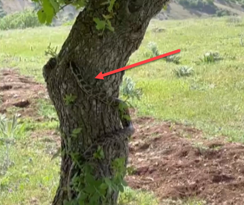 Soluklanmak için ağacın gölgesine oturdu! Dev yılanla göz göze geldi