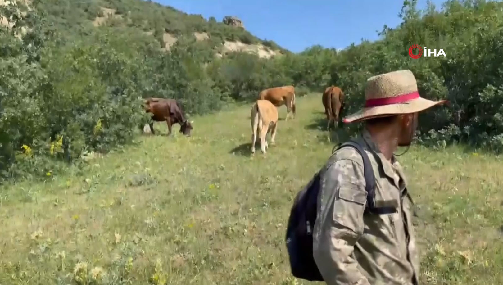 Saraykent ilçesine bağlı Atalan Küme evleri mevkiinde hayvanlarını otlatan besici İsmail Cengizer, soluklanmak için ağacın gölgesine oturmak istedi.