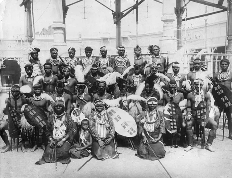 1899'da Londra'da Afrikalılar, sömürge savaşlarını canlandırmaya zorlandı. İzleyiciler her gün defalarca sahnelenen bu gösterileri izledi.