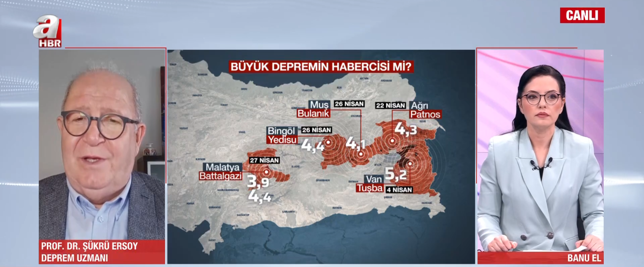 Türkiye genelinde son günlerde artan depremler sonrası A Haber canlı yayınında konuşan Prof. Dr. Şükrü Ersoy, sismik hareketliliğin "normal seyirde" olduğunu vurguladı. Sosyal medyadaki korku senaryolarına karşı uyaran Ersoy, bilimsel veriler dışında yapılan yorumlara itibar edilmemesi gerektiğini söyledi.