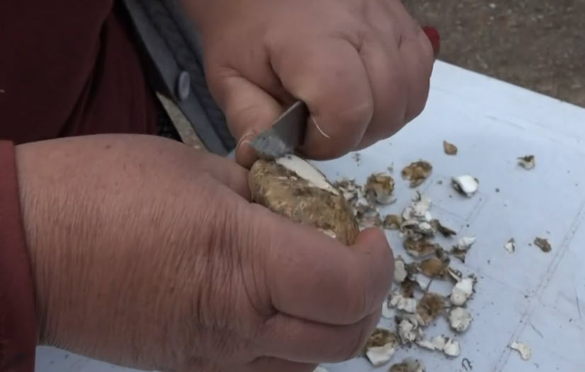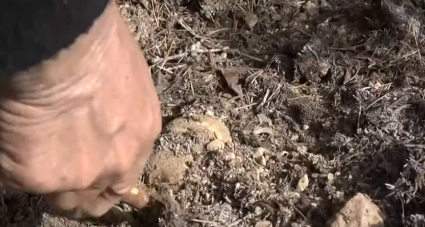 Mantarlar toprağın altında olduğu için çubukla bu şekilde araziyi kontrol ederek ilerlemeye çalışıyorlar.