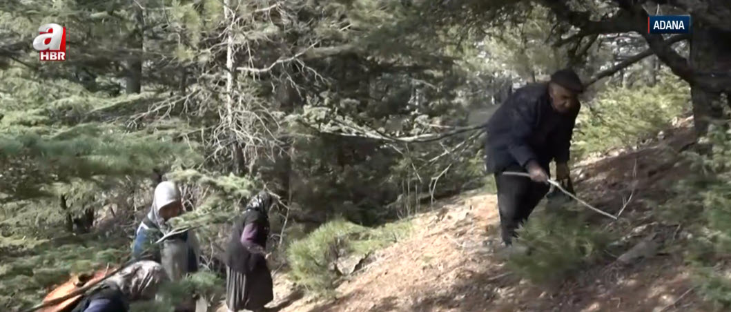 Toros Dağları'nda sabahın erken saatlerinde bölge insanları özellikle sedir ağaçlarının olduğu yere geliyor.